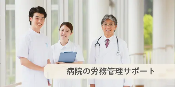 パワハラの訴えが増えている、問題社員の対応で困っている、時間外労働や有給休暇の管理で職員から不満が出ている、さらに医師の働き方改革の対応や始業前残業など、病院の労務問題について解決サポートを行います。